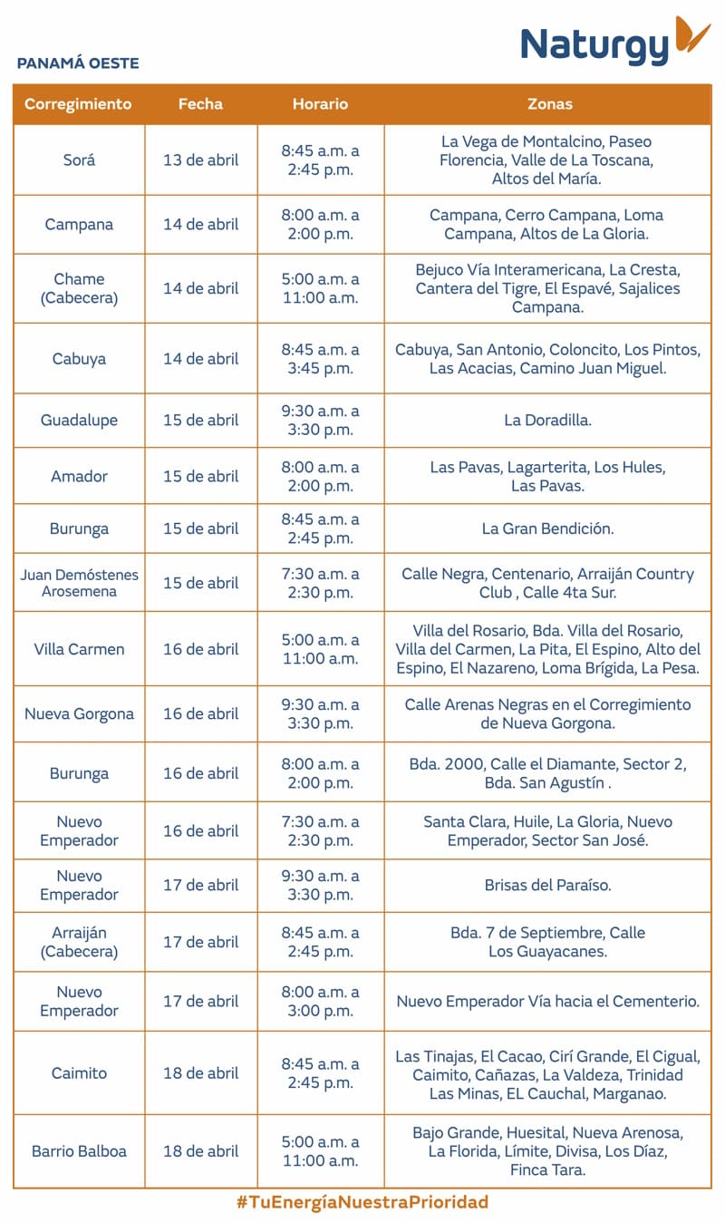 Atención Panamá Oeste. Trabajos de mantenimiento en la red eléctrica del 13 al 19 de abril de 2026 9 de abril de 2026