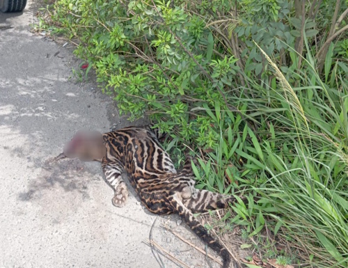 Un ocelote fue hallado sin vida en la Vía Centenario, distrito de Arraiján y, presuntamente atropellado. Este felino es una especie en riesgo, cuyo número disminuyó drásticamente en el país debido a la caza ilegal y la pérdida de su hábitat natural.